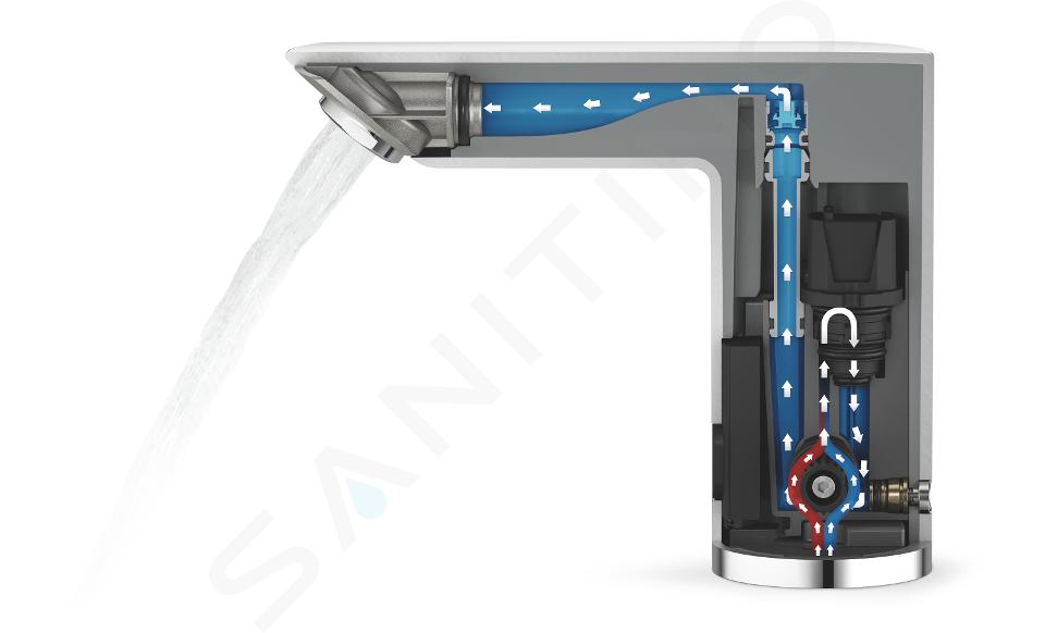 GROHE Bau Cosmopolitan E is niet alleen geschikt voor moderne huishoudens, maar vooral voor restaurants, fitnesscentra, medische voorzieningen of zakelijke badkamers, met andere woorden voor alle drukke ruimtes waar het aantal van allerlei mensen hoog is. Dankzij de infrarood sensor wordt de kraan opgestart alleen wanneer hij een beweging detecteert. Dit draagt bij aan waterbesparing. De wastafelkraan wordt aangedreven door een 6V lithium batterij. En omdat de infrarood technologie weinig energie gebruikt, gaat de batterij zeven jaar mee - zelfs als de kraan 150 keer per dag wordt gebruikt!