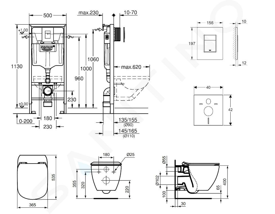 De set bevat ook een zelfdragend Rapid SL inbouwelement ontworpen voor voorwandmontage of montage in een lichte scheidingswand (met andere woorden droogbouw). Het stalen frame is bovenop voorzien van poedercoating. Het inbouwreservoir is voorzien van een GD 2 spoelereservoir met een vooraf ingesteld spoelvolume van 6 en 3 l. Het reservoir is verder geïsoleerd van condenswater en tevens voorzien van een geluidsisolatie voor fluisterstille spoeling. Tevens is het wc-element voorzien van een aan- en afvoergarnituur. Wateraansluiting is mogelijk aan links, rechts, achter of boven. Twijfel niet meer en kies voor deze toiletset samengesteld uit topkwaliteit componenten voor je comfort en plezier die jarenlang mee gaat.