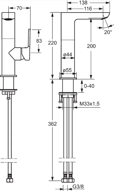 Eengreeps wastafelmengkraan, met draaibare uitloop