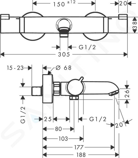 Deze thermostatische badkraan betover je met zijn hoge kwaliteit, onberispelijke functionaliteit, interessante design en moderne uitstraling. De badkraan is uitgerust met een thermostatische kardoes van hansgrohe kwaliteit waardoor je verzekerd bent van jarenlang gebruik zonder problemen. De thermostaat reageert op alle schommelingen in de watertoevoer, hetzij van temperatuur of van het volume. Zo ben jij altijd verzekerd van constante temperatuur alsook van voldoende waterstraal. Door de 177 mm lange baduitloop stroomt er 20 liter water per minuut - het bad wordt in een mum van tijd gevuld!