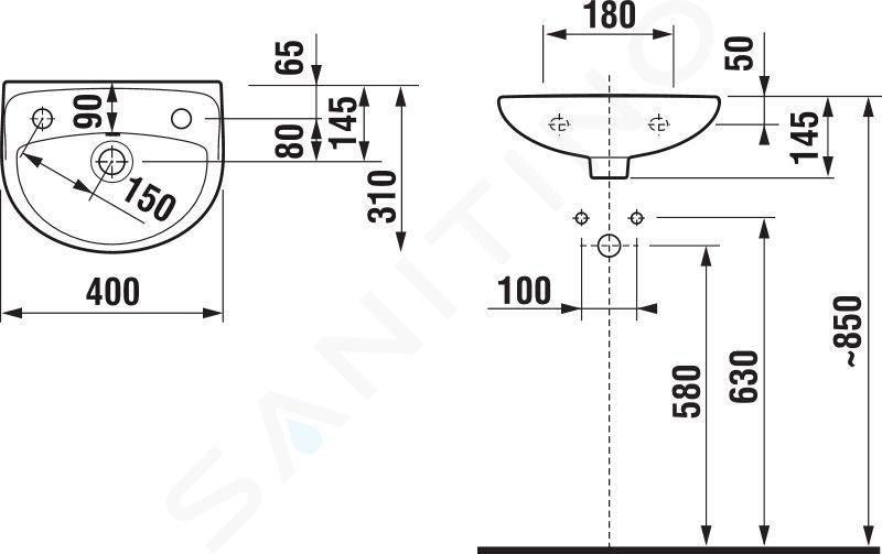 Hangende wastafel met kraangat links