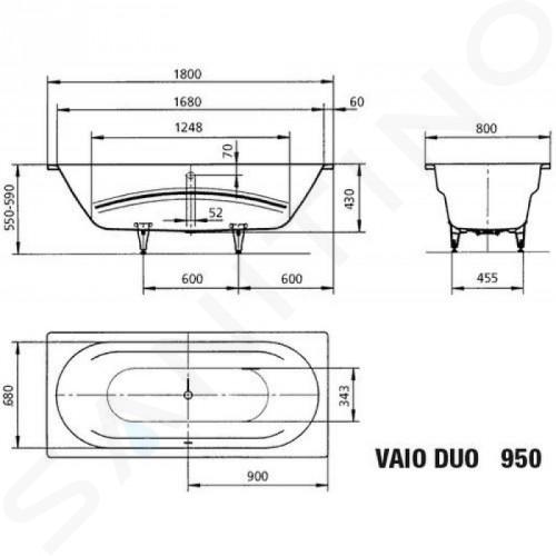 Rechthoekige badkuip Vaio Duo model: 950 kleur wit: met... Volledige omschrijving weergeven.