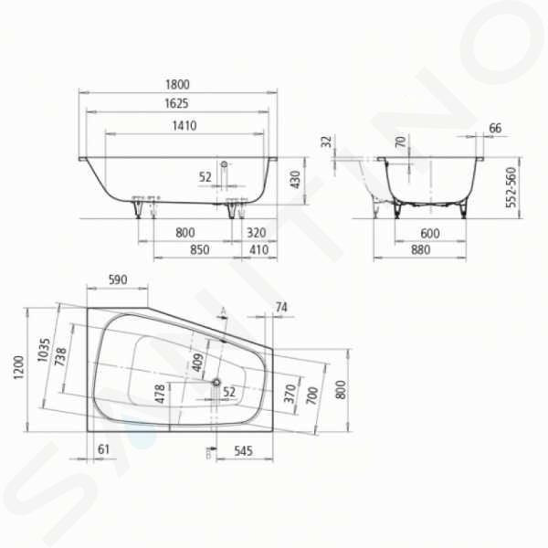 Asymmetrisch bad Plaza Duo 190, uitvoering links