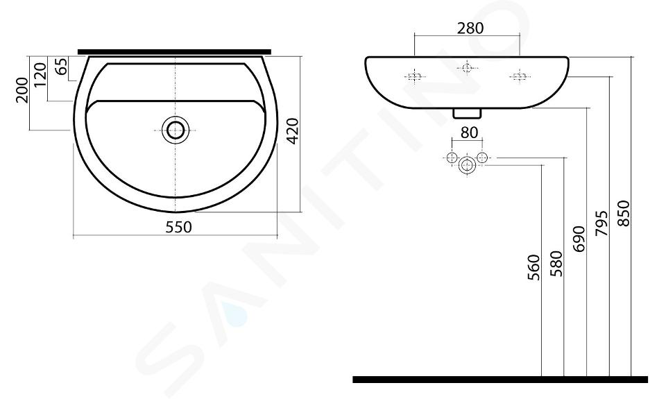 Wastafel, combineerbaar met halfzuil afmeting: 550 x 420 mm zonder... Volledige omschrijving weergeven.
