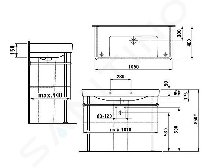 Wastafel zonder kraangat, met overloop breedte: 1050 mm diepte: 460 mm... Volledige omschrijving weergeven.