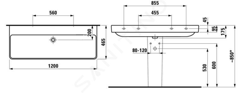 Wastafel zonder kraangat, met overloop breedte: 1200 mm diepte: 465 mm... Volledige omschrijving weergeven.