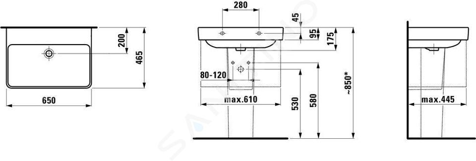 Wastafel zonder kraangat, met overloop