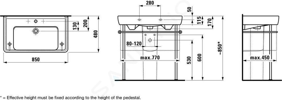 Wastafel met 1 kraangat, met overloop breedte: 850 mm diepte: 480 mm... Volledige omschrijving weergeven.