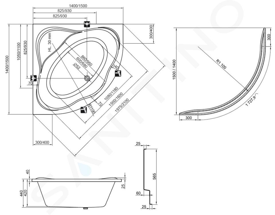 Acryl hoekbad NewDay afmetingen: 1500 x 1500 mm materiaal: gegoten... Volledige omschrijving weergeven.